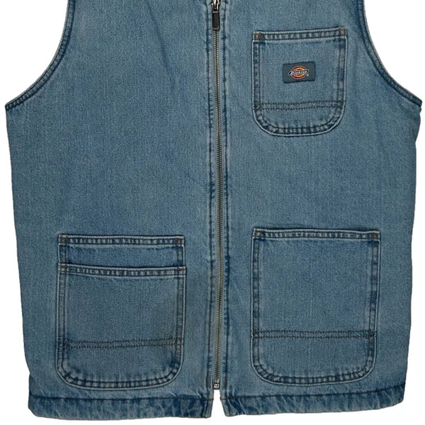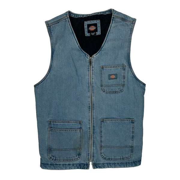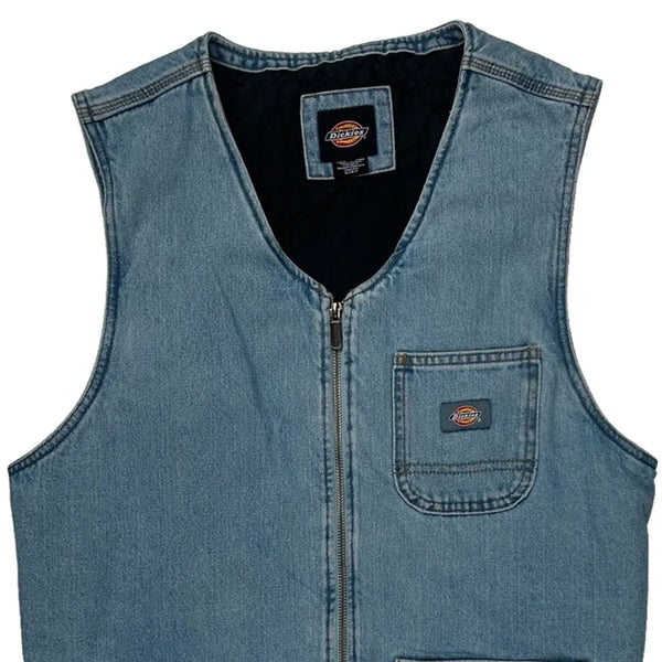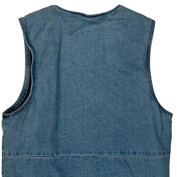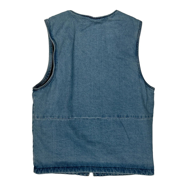 Light Wash Denim Gilet With Zipper Closure And Multiple Pockets.