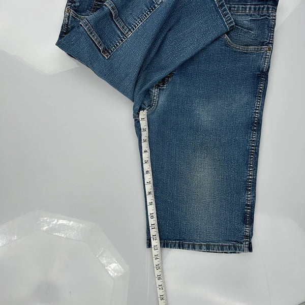 Dickies Denim Shorts, fit a 36″ Waist and 11″ inseam.