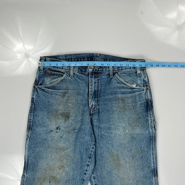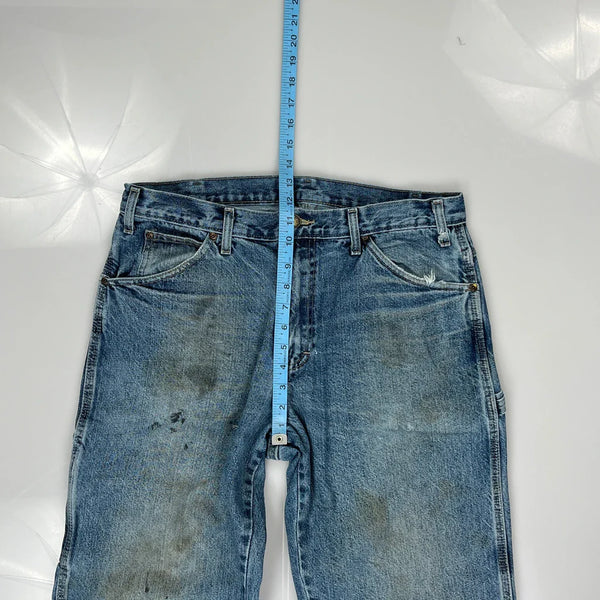 Dickies Carpenter Jeans, fit a 38″ Waist and 30″ inseam.