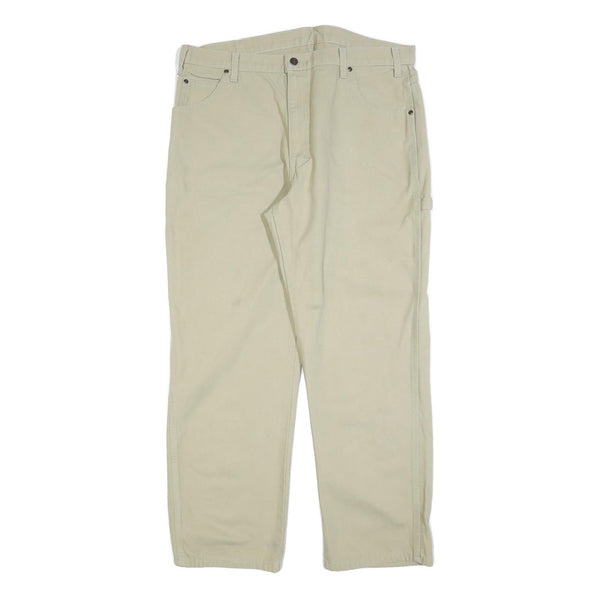 DICKIES Mens Beige Cotton Blend Regular Straight Trousers W38 L30 Workwear Zip