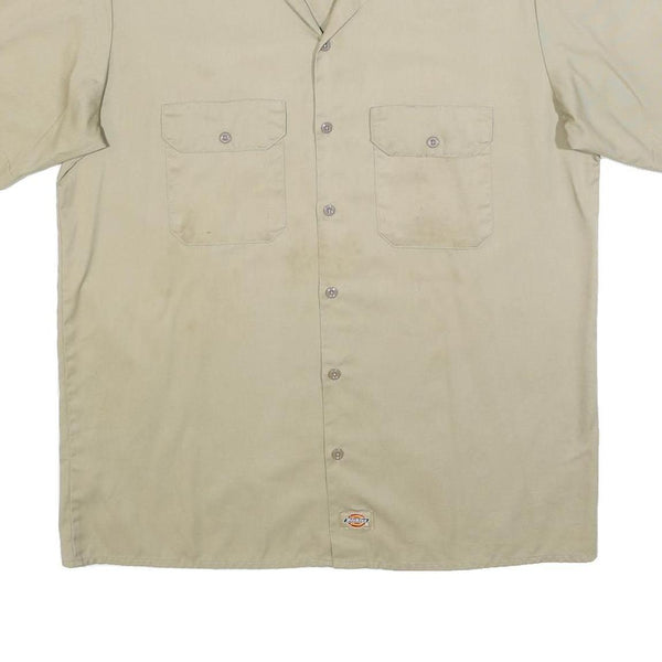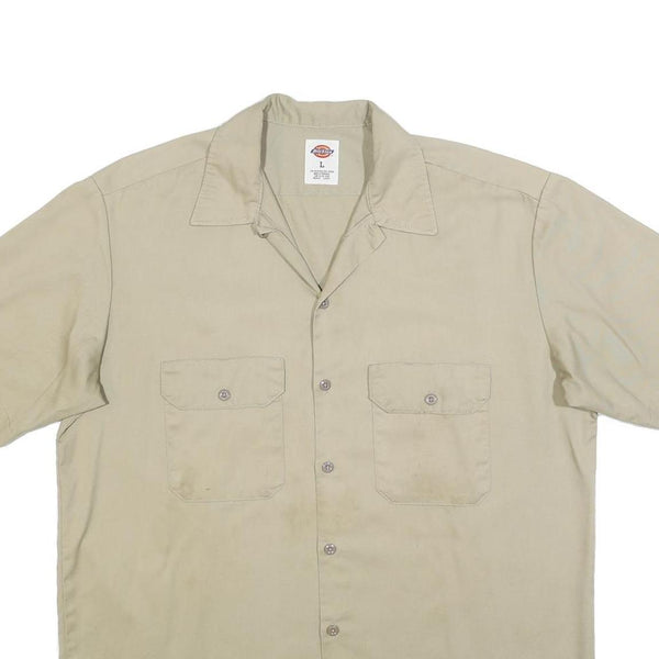 DICKIES Mens Beige Cotton Shirt L Button Front Workwear Two Pocket Casual