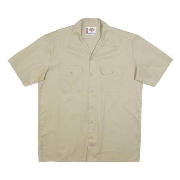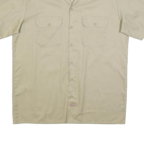 DICKIES Mens Beige Cotton Short Sleeve Shirt L Button Pocket Workwear