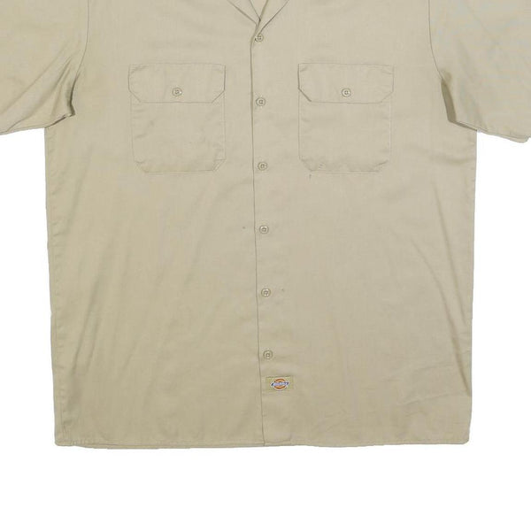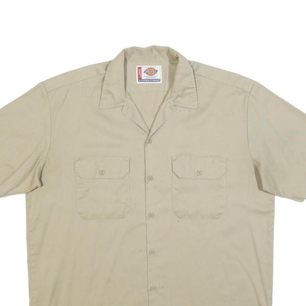 DICKIES Mens Beige Short Sleeve Work Shirt L Cotton Blend Casual Button Up