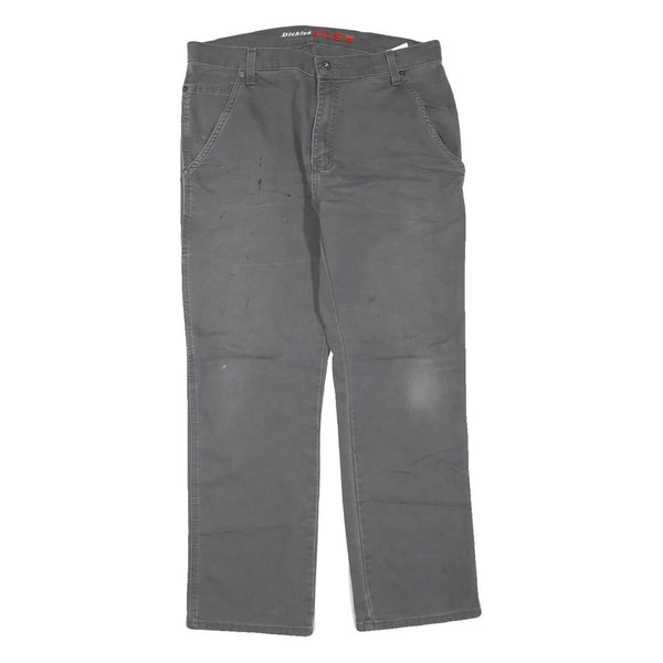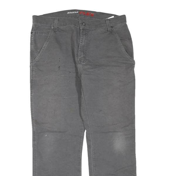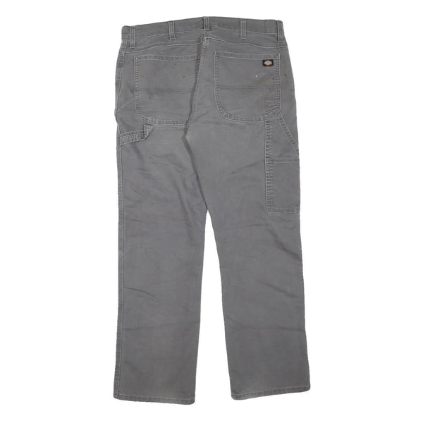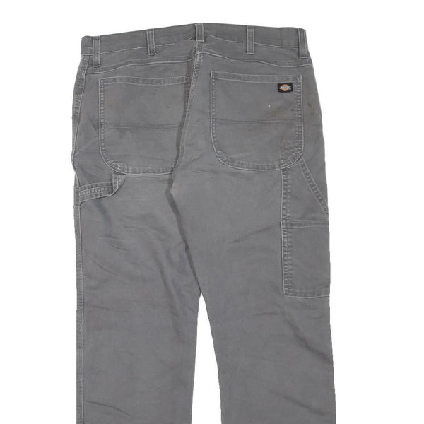 DICKIES Mens Cotton Blend Grey Regular Straight Trousers W34 L30 Workwear Zip