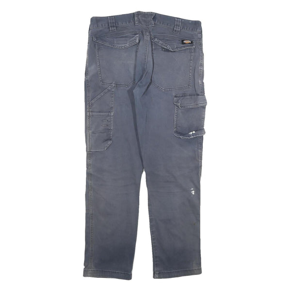 DICKIES Mens Cotton Blend Grey Relaxed Cargo Trousers W32 L28 Workwear Durable
