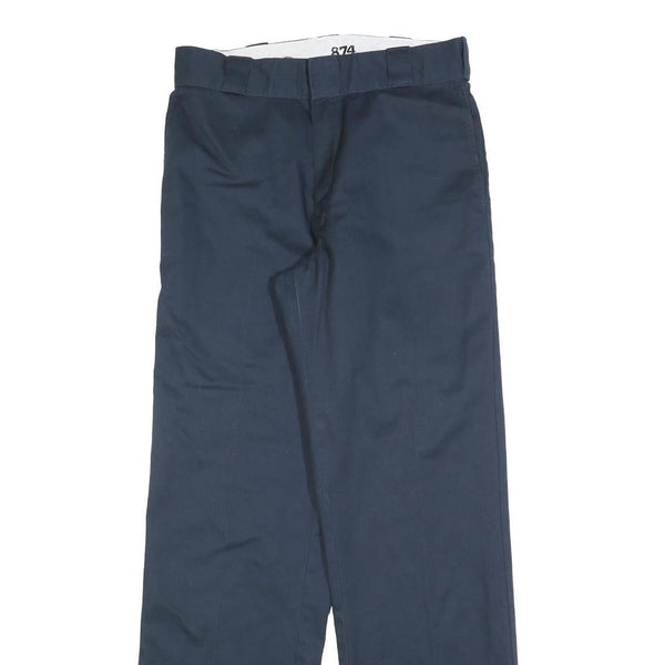 DICKIES Mens Cotton Blend Navy Relaxed Straight Trousers W30 L32 Workwear