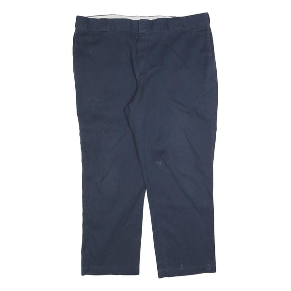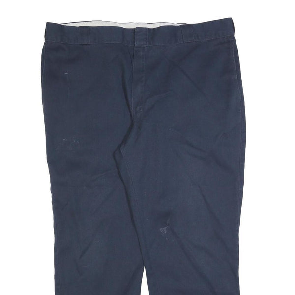 DICKIES Mens Cotton Blend Navy Relaxed Straight Trousers W40 L30 Workwear Zip