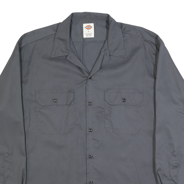 Home DICKIES Mens Grey Workwear Style L Cotton Blend Shirt Long Sleeve Button Pocket