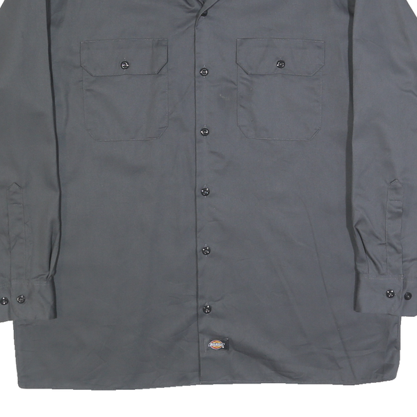 Dickies mens grey workwear style l cotton blend shirt long sleeve button pocket