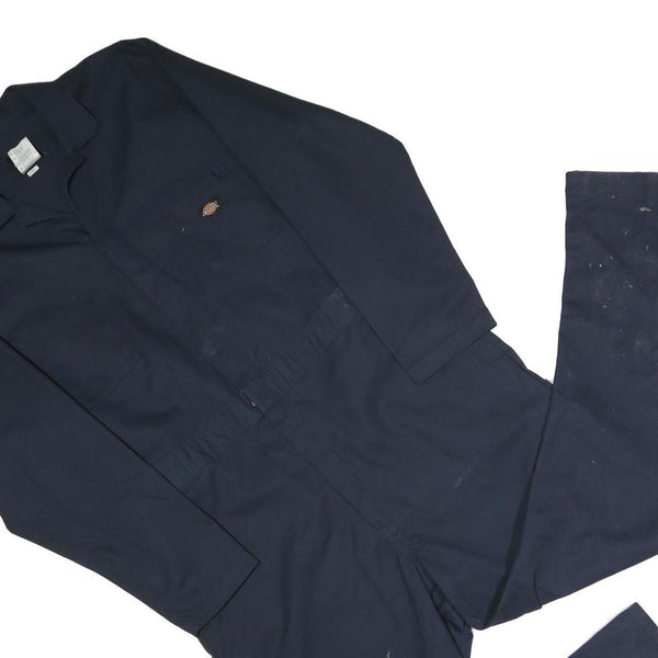 DICKIES Mens Navy Blue Cotton Blend Dungarees XL W32 L14 Workwear Relaxed Fit