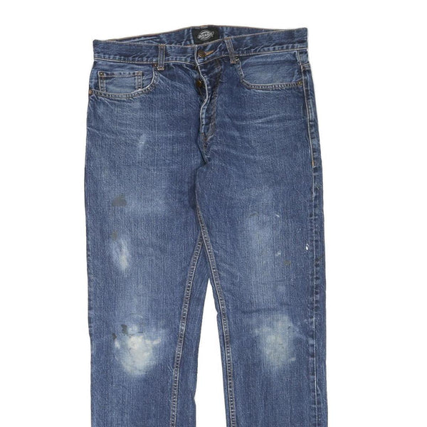 DICKIES Mens Regular Fit Blue Denim Jeans Button W34 L34 Cotton Blend