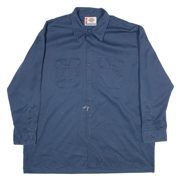 DICKIES Mens Worker Shirt Blue Long Sleeve 2XL