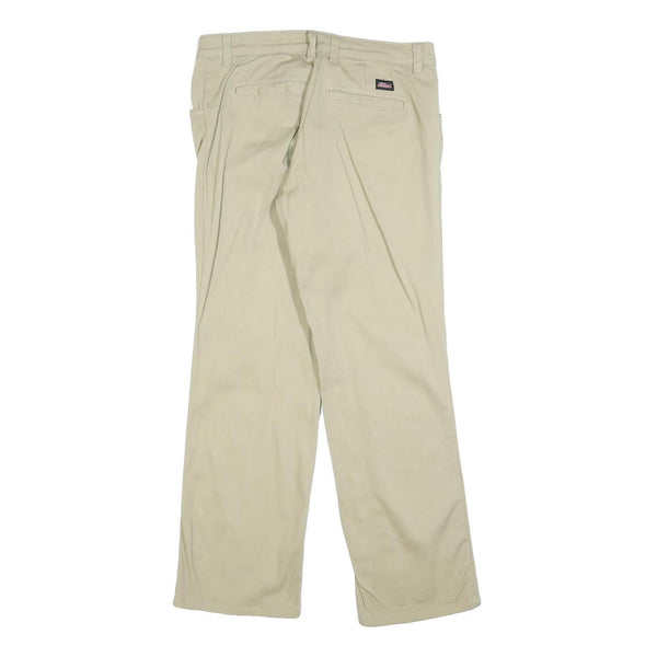 DICKIES Womens Relaxed Beige Cotton Blend Trousers W30 L28 Zip Pocket Casual