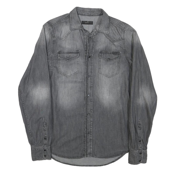 DIESEL Mens Grey Denim Shirt M Long Sleeve Casual Button Pocket Fashion