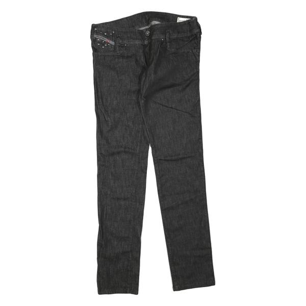 Diesel womens regular fit black denim jeans cotton blend w28 l32 stylish zip