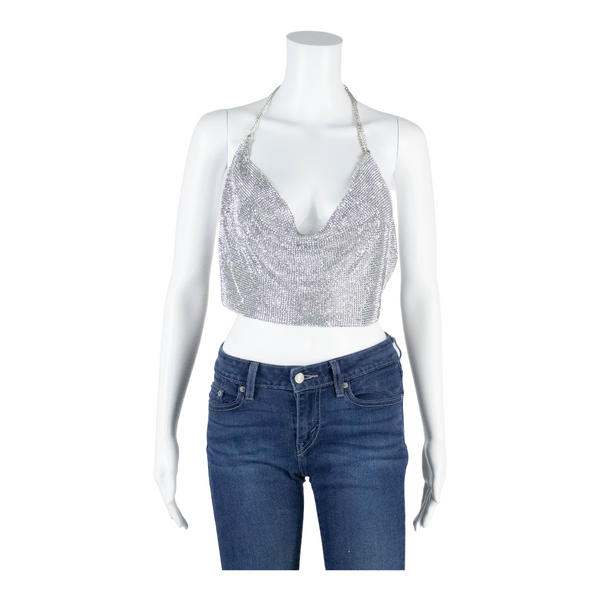 Dimonte Scoop Neck Womens Cropped Top Silver Strapless M