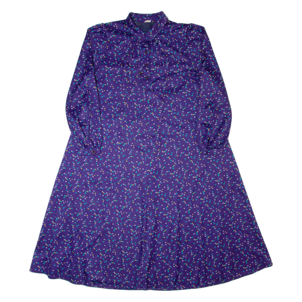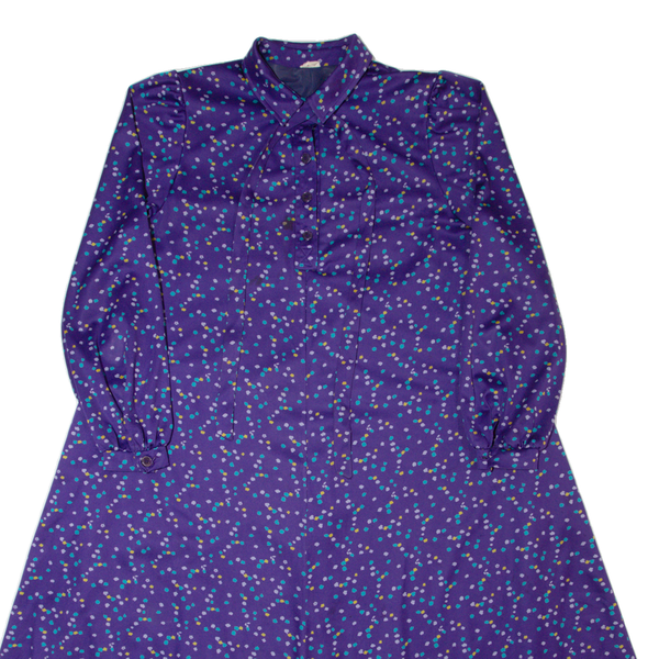 Diolen womens a-line dress purple 90s spotted long sleeve long l