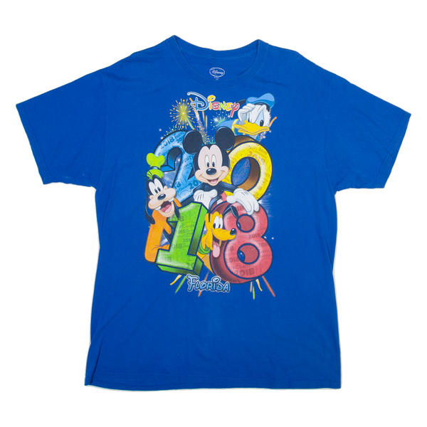 DISNEY Mickey Goofy Donald Pluto Mens T-Shirt Blue L