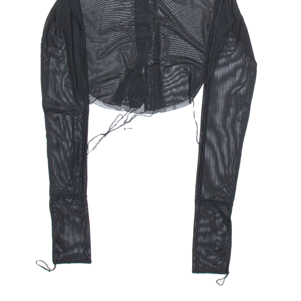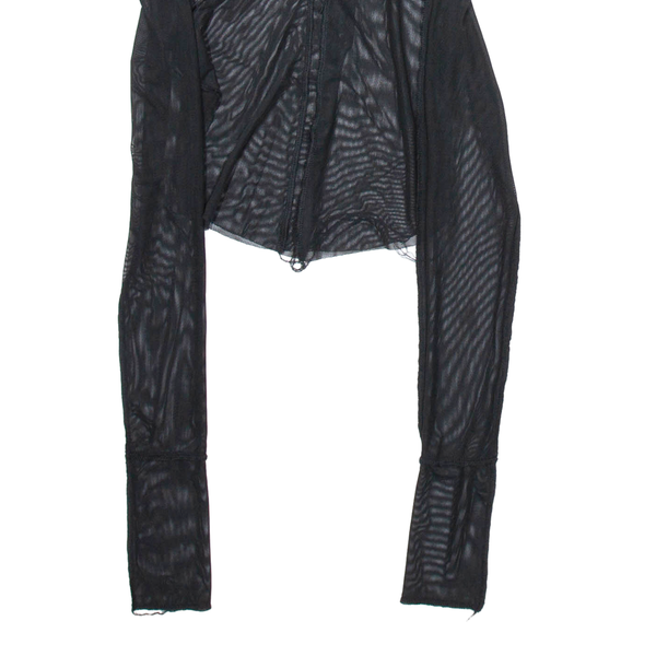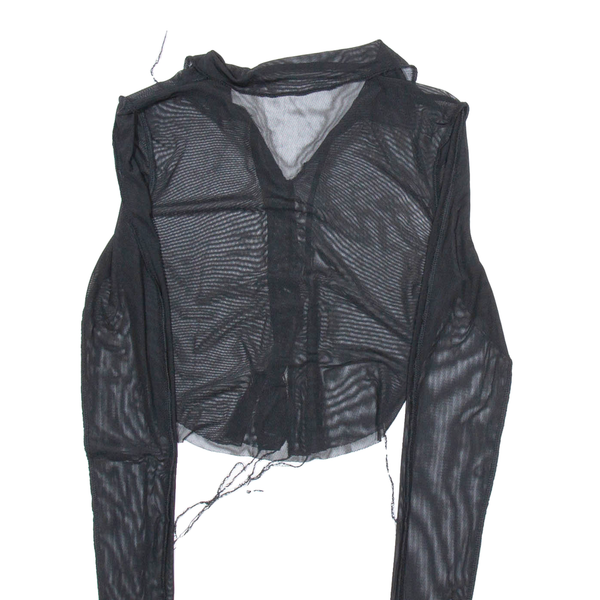 Distressed Womens Shirt Black Collared Long Sleeve Viscose S