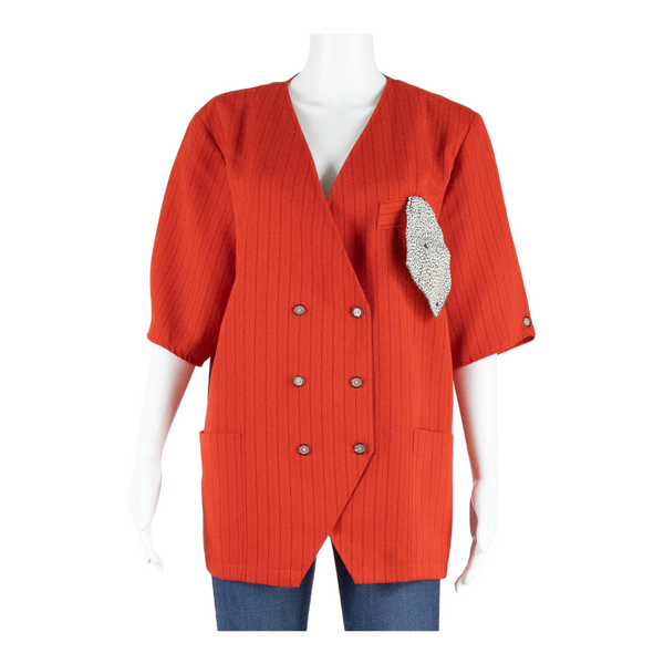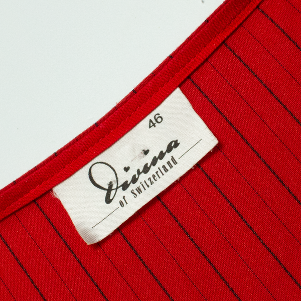 DIVINA Womens Blouse Red V-Neck Striped XL