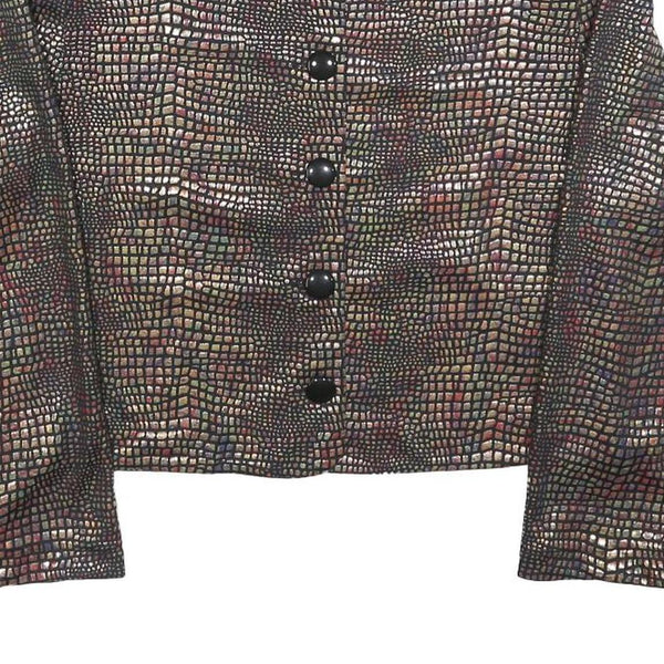 DIVINA Womens Brown Button Jacket S Polyester Blend Patterned Cropped Stylish