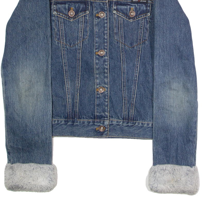 DKNY Faux Fur Trim Womens Denim Jacket Blue S