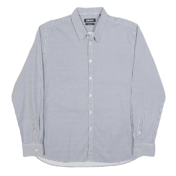 DKNY Mens Blue & White Slim Fit Cotton Shirt XL Formal Checked Shirt