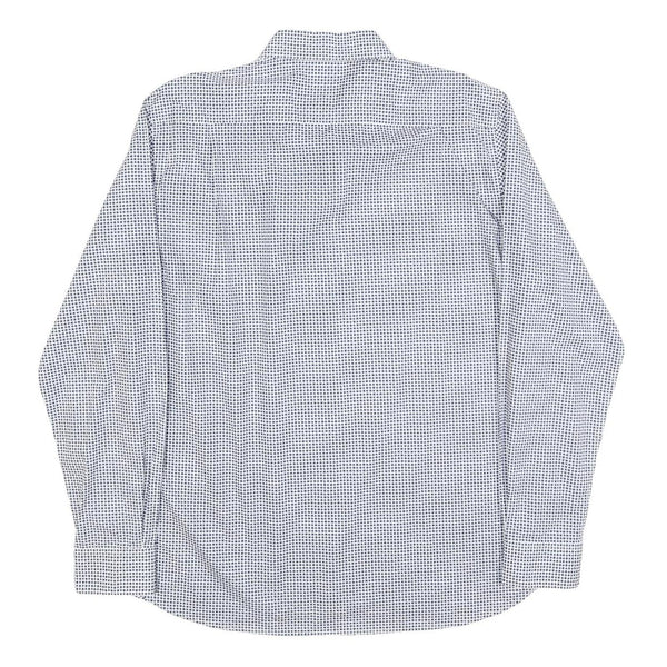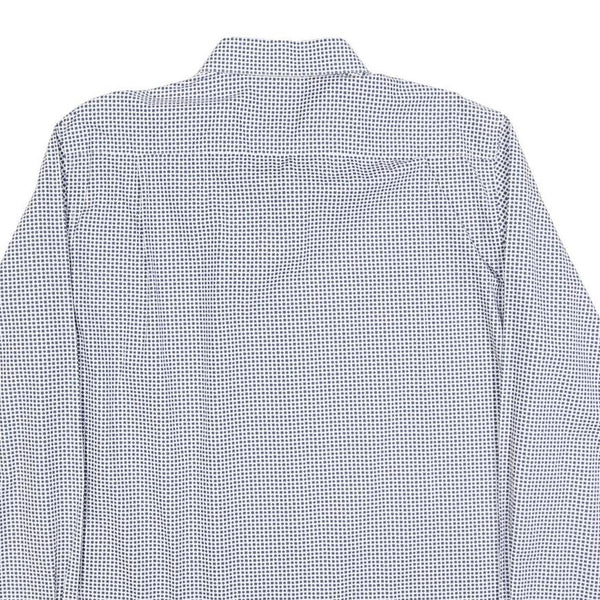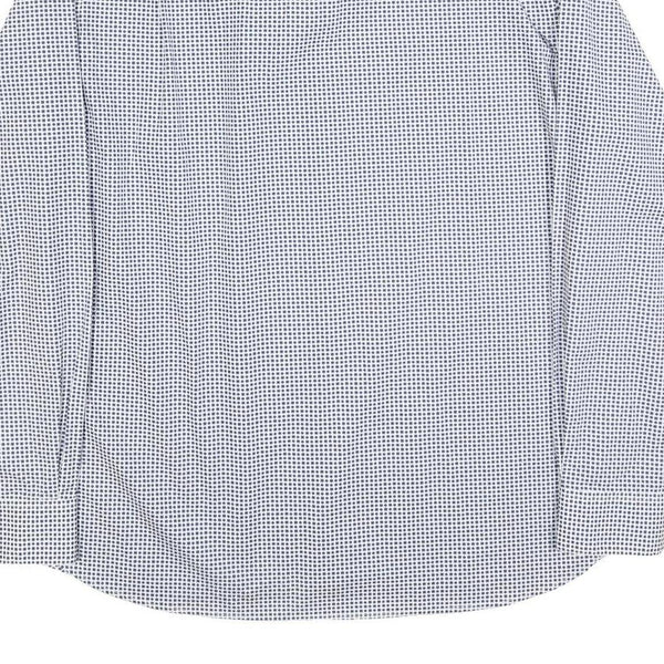 This DKNY mens shirt features a neat blue and white checked pattern, creating a refined and classic look suitable for formal or office wear. The shirt displays a subtle grid design that complements the slim fit cut for a modern silhouette.