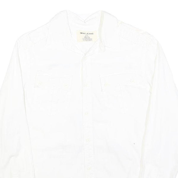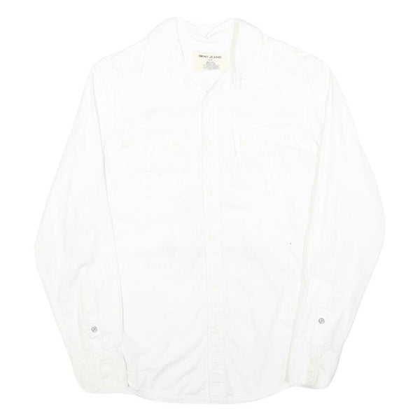 DKNY Mens White S Cotton Blend Casual Shirt East Village Print