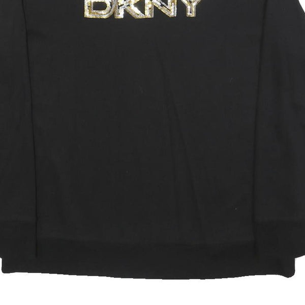 DKNY Womens Black Cotton Blend Crew Neck S Sweatshirt Logo Embellished Pullover