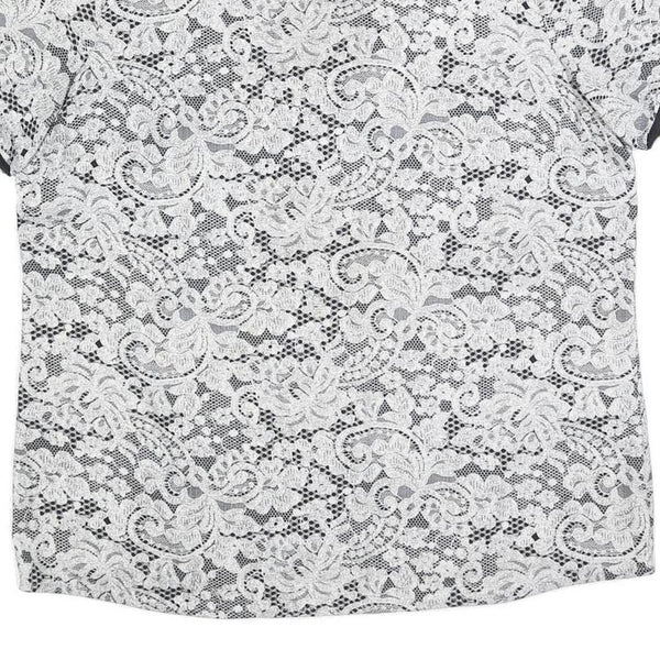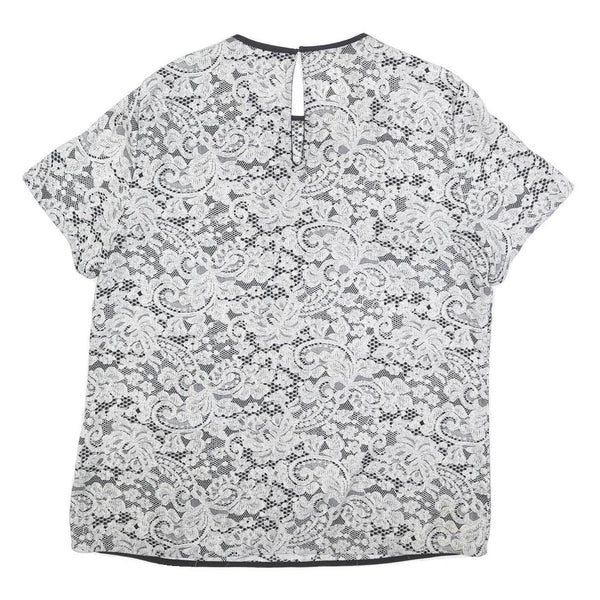 DKNY Womens Black & White Lace Printed Top Short Sleeve Round Neck L Stylish