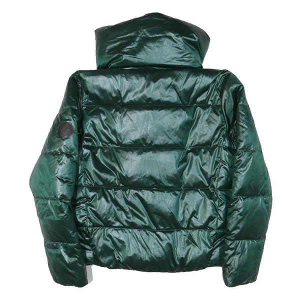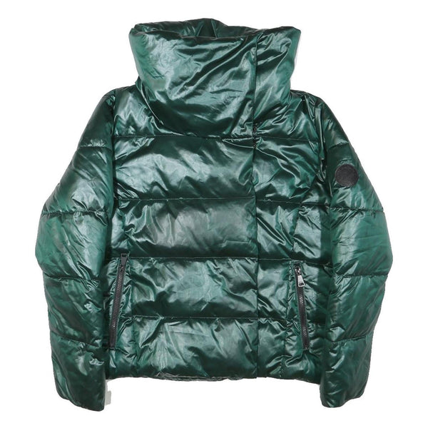 DKNY Womens Green Puffer Jacket L Polyester Blend Zip Outdoor Winter Warm