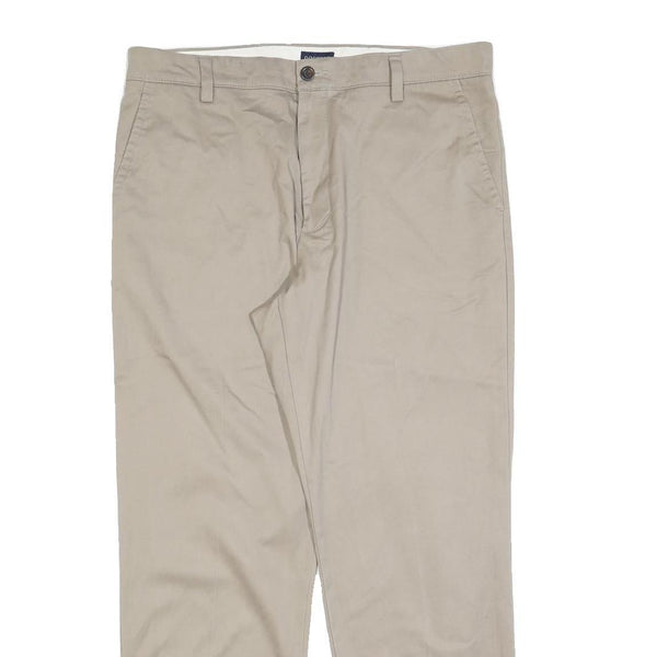 DOCKERS Mens Beige Regular Fit Straight Leg Trousers W34 L30 Cotton Blend Zip