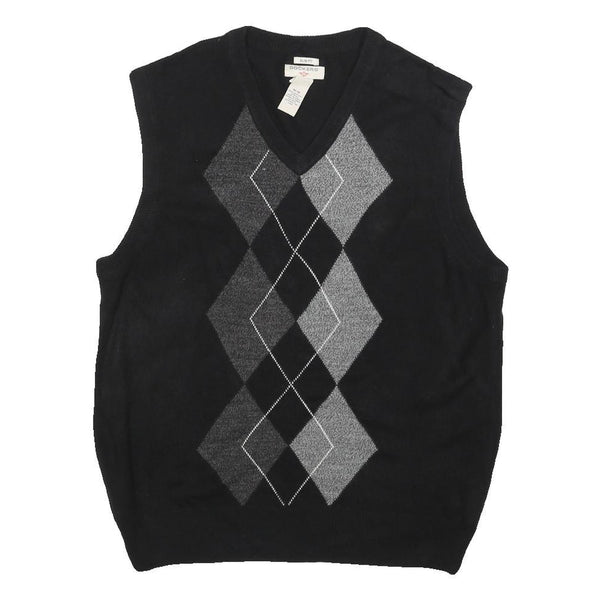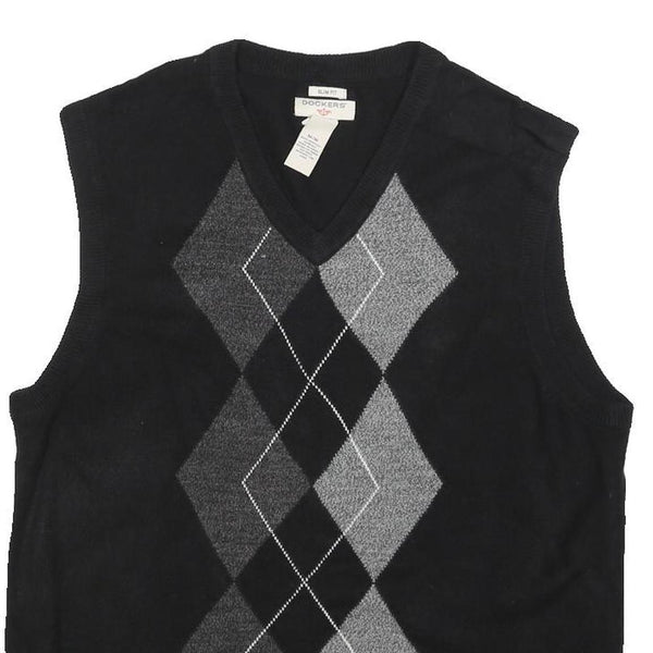 DOCKERS Mens Black & Grey Argyle Patterned Jumper V-Neck Basic Knit M Sleeveless