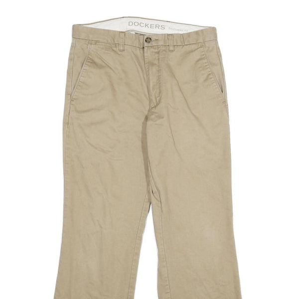 DOCKERS Mens Cotton Beige Classic Fit Straight Leg Trousers W32 L32 Casual Smart