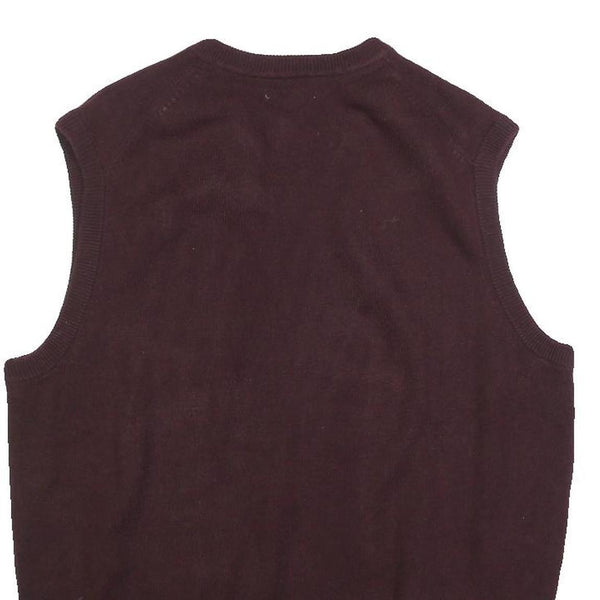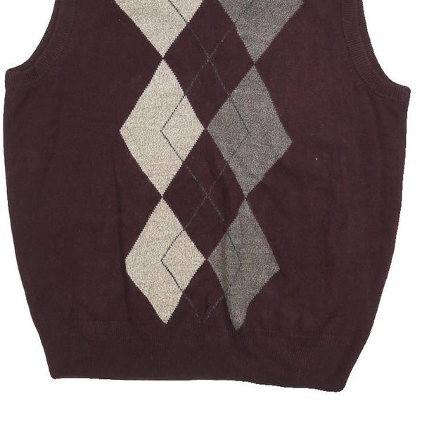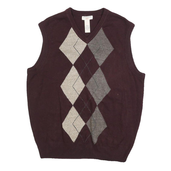 DOCKERS Mens Maroon & Grey Argyle Pattern Pullover V-Neck Acrylic Jumper M