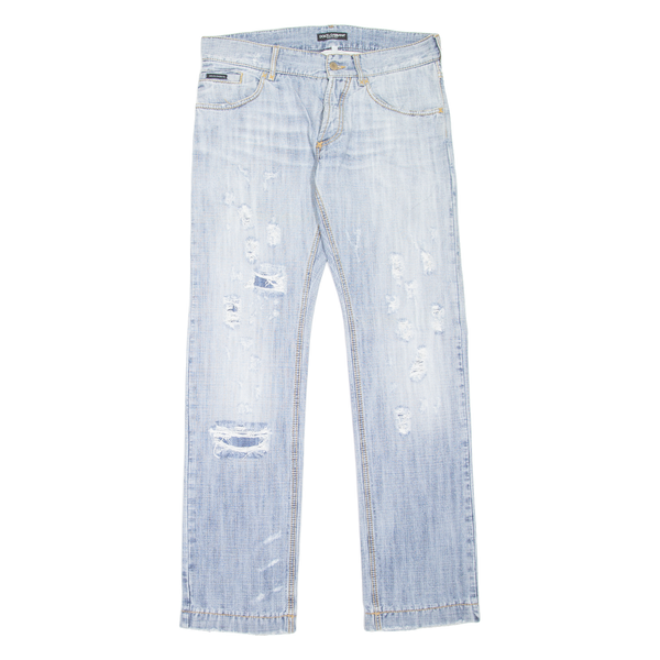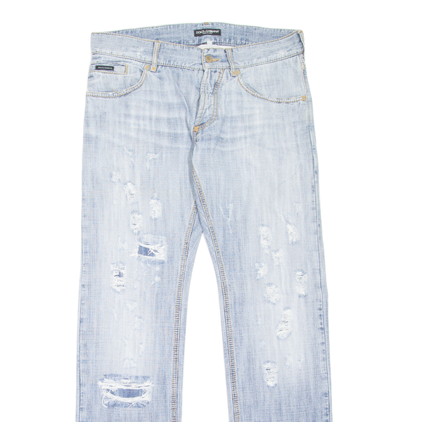 DOLCE & GABBANA Distressed Womens Jeans Blue Straight Stone Wash W34 L33