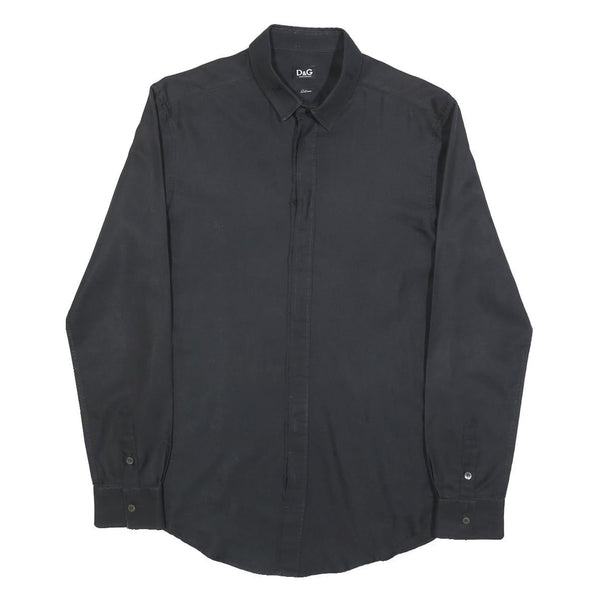 DOLCE & GABBANA Mens Black Plain Shirt S Long Sleeve Luxury Button Collar