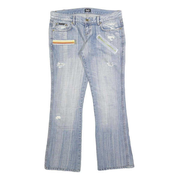 DOLCE & GABBANA Womens Blue Regular Bootcut Denim Medium W31 L29 Distressed Zip