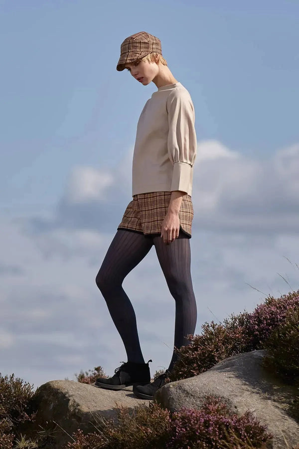 The sport luxe trend is given a smart update with these gorgeous check shorts. They’re made from roll end soft wool blends that helps cut down on fashion waste. The shorts have an elasticated waist for a comfort fit and are finished with contrasting piping around the leg.