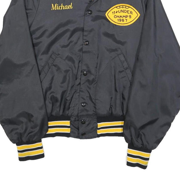 DON ALLERSON Mens Black & Yellow Varsity Button Jacket S Nylon Embroidered 1987