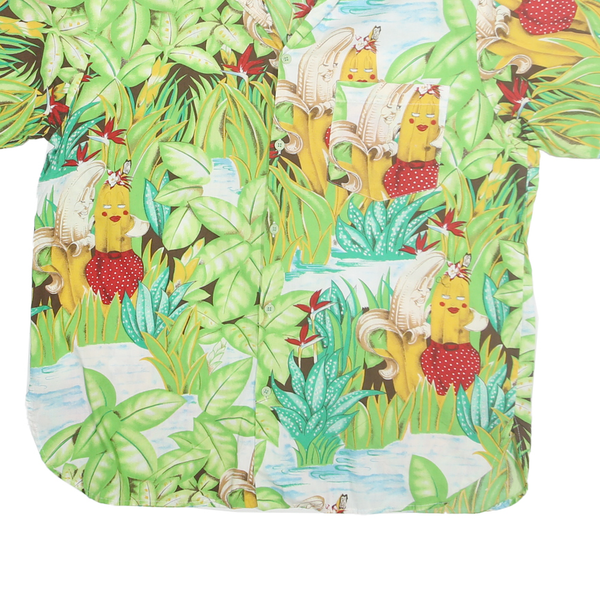 DR BEACH Mens Green Cotton Blend XL Tropical Print Shirt Short Sleeve Beachwear