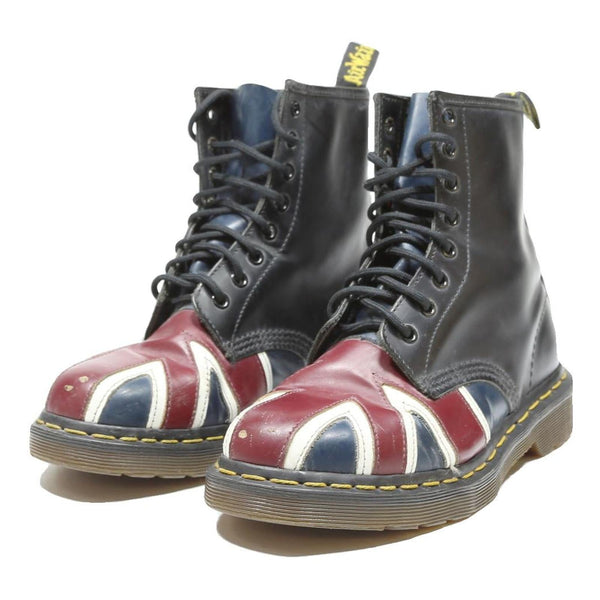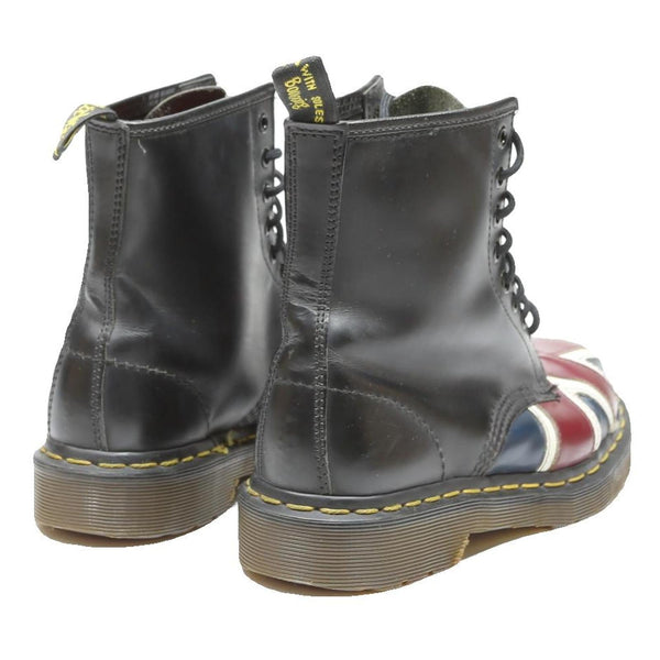 DR MARTENS 1460 Womens Leather Biker Boots Black Union Jack UK 5 Iconic Stitched