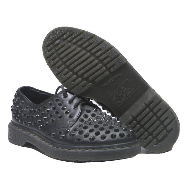 DR MARTENS 1461 Mens Lace-Up Shoes Black Leather UK 9 Studded Punk Rock Fashion