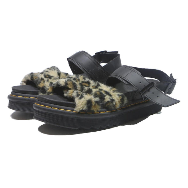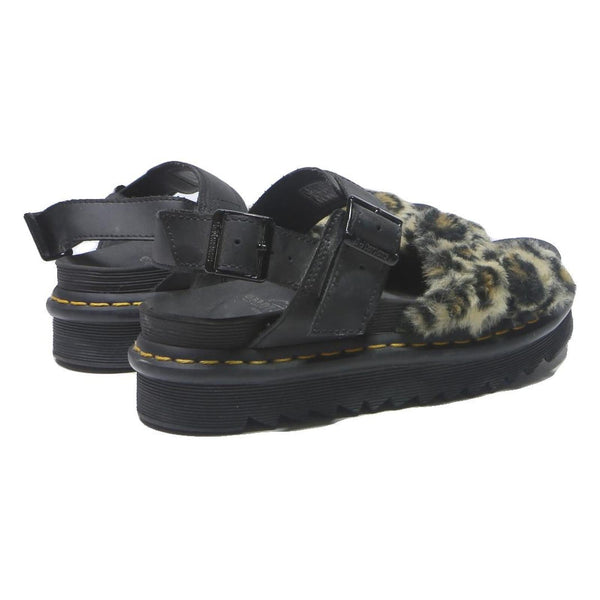 DR MARTENS Womens Black Leather Platform Sandals UK 5 Faux Fur Leopard Print