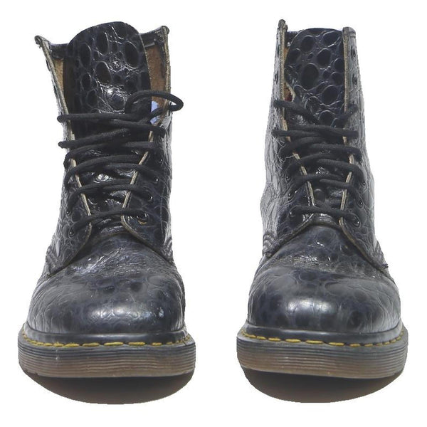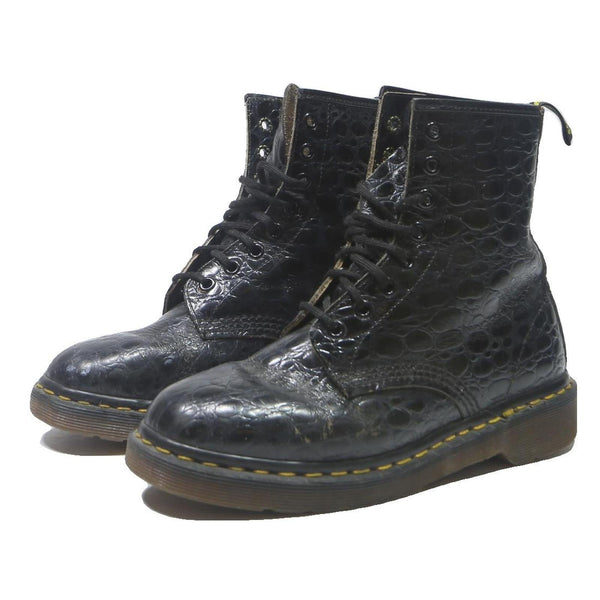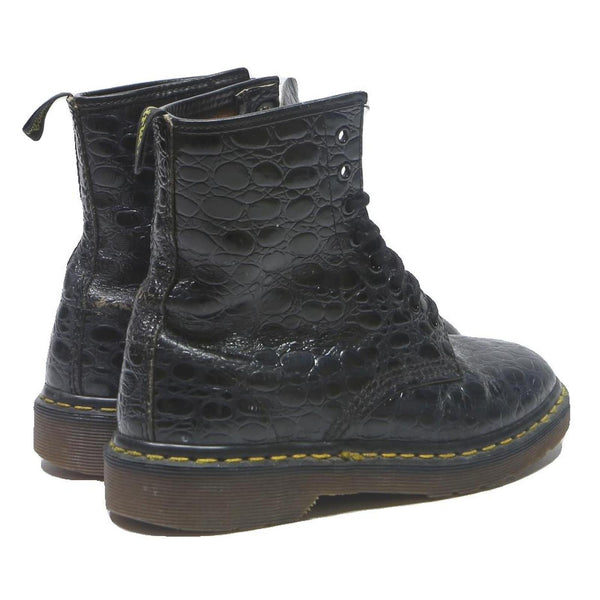 DR MARTENS Womens Leather Ankle Boots Black UK 6 Croc Embossed Lace-Up