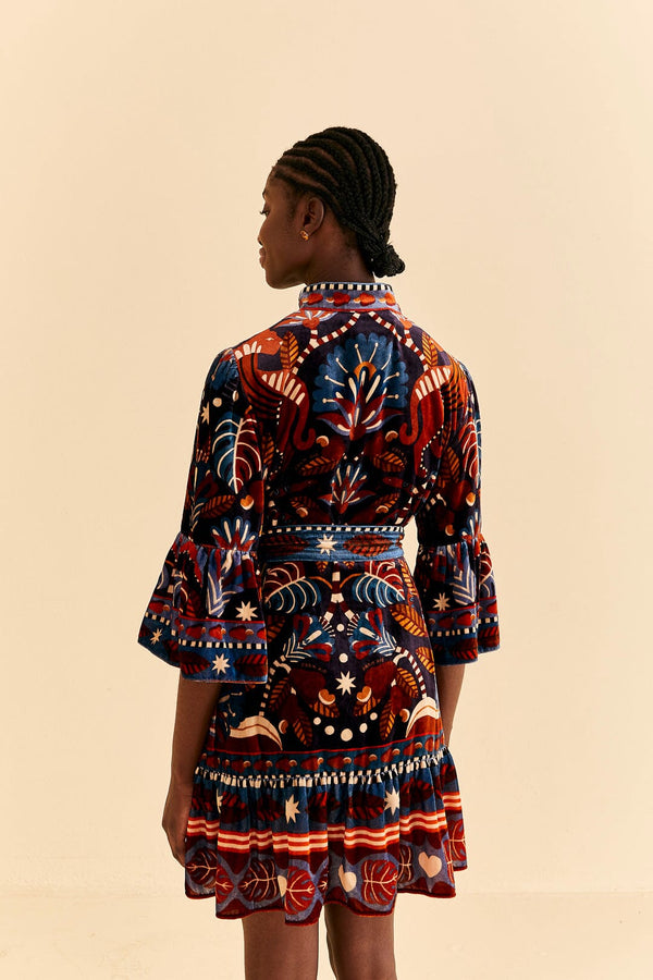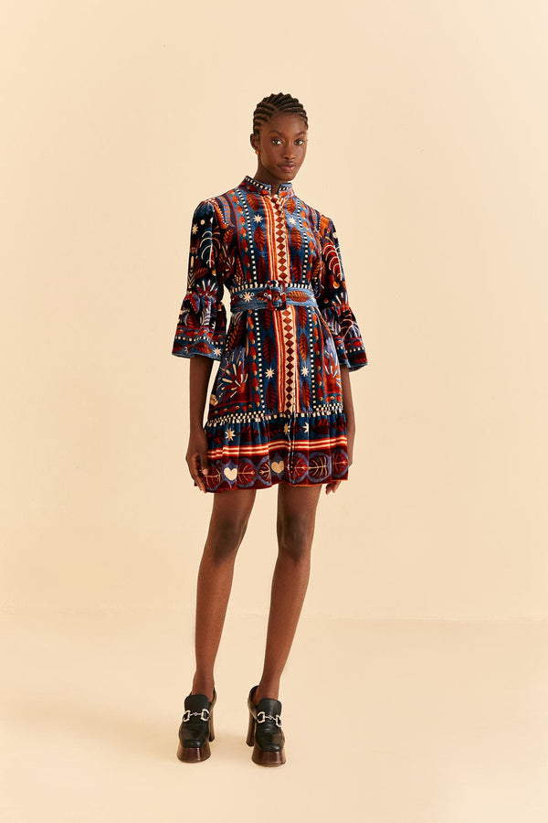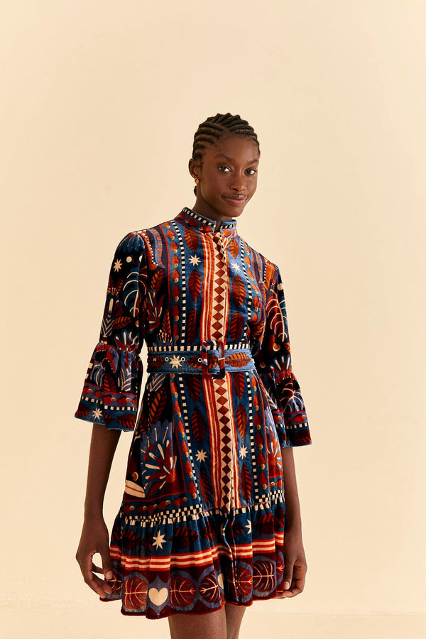 Your transitional wardrobe just got its statement piece! Meet the Blue Nature Beauty Scarf Mini Dress, a belted style that is here to warm you up this season with its bold hues. The mini skirt and loose sleeves bring movement to the look while giving you the cutest hourglass silhouette. And the nature-inspired print matches all Fall elements. Invite your cutest shoes to pair the piece, and get ready to conquer the season just around the corner!