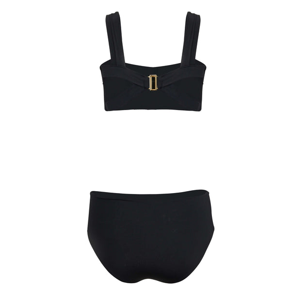The Dylan Top is all about the back! Resembling the Donatella One Piece, Dylan is a bandeau with wide shoulder straps and interesting detail in the back. The clasp is heat-free, rust-free, and hypoallergenic.Dylan is great as a crop top as well. Wear it with pants, a skirt or shorts. Or pair it with any Sauipe bikini bottom, print, or solid.