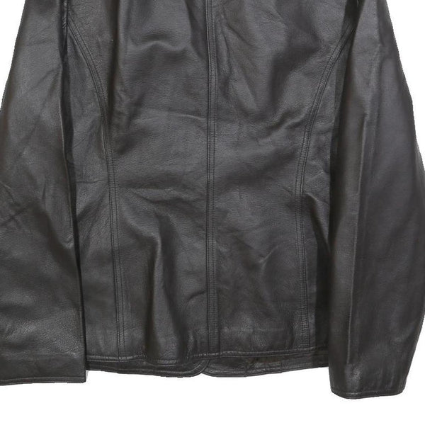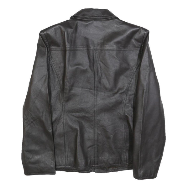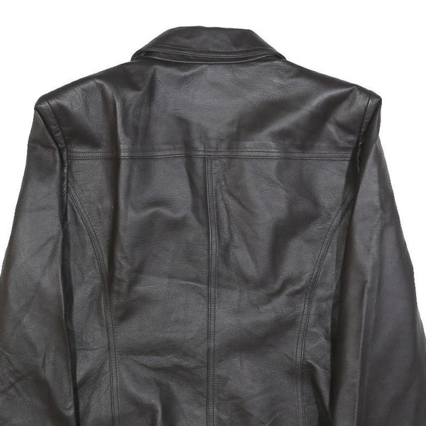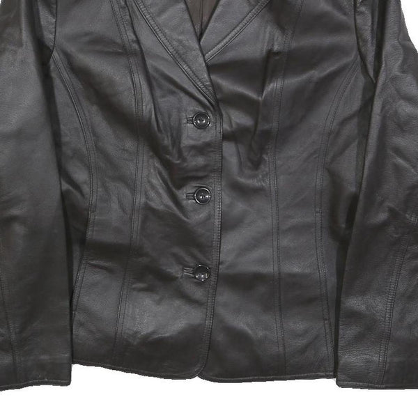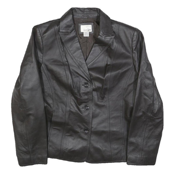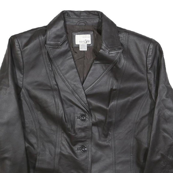 EAST5TH Womens Black Leather Button Jacket L Plain Stylish Classic