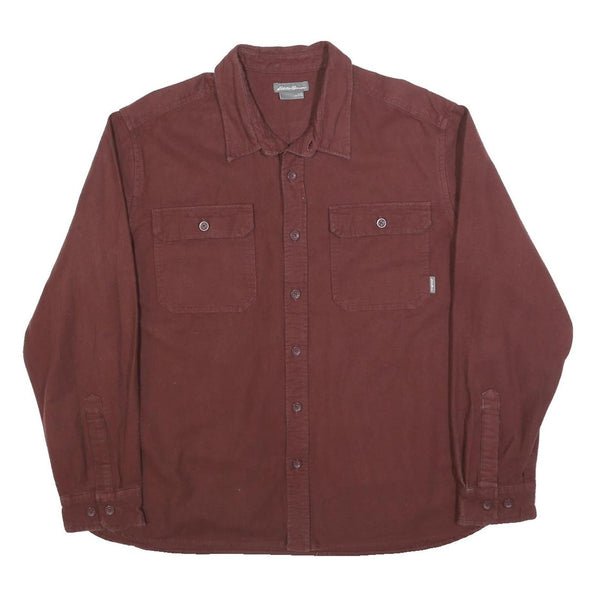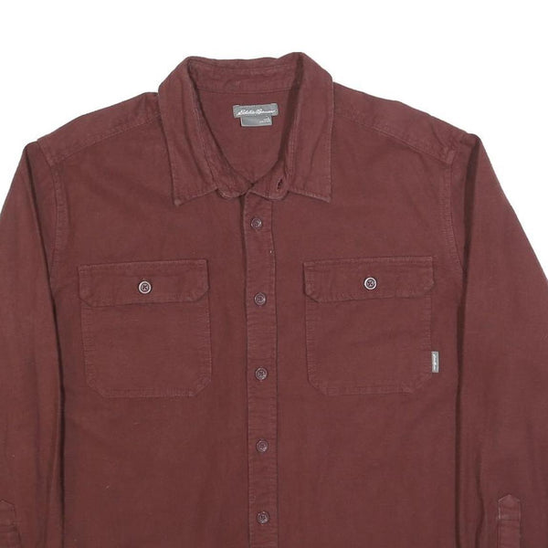 EDDIE BAUER Mens Maroon Cotton Shirt L Long Sleeve Button Pocket Casual